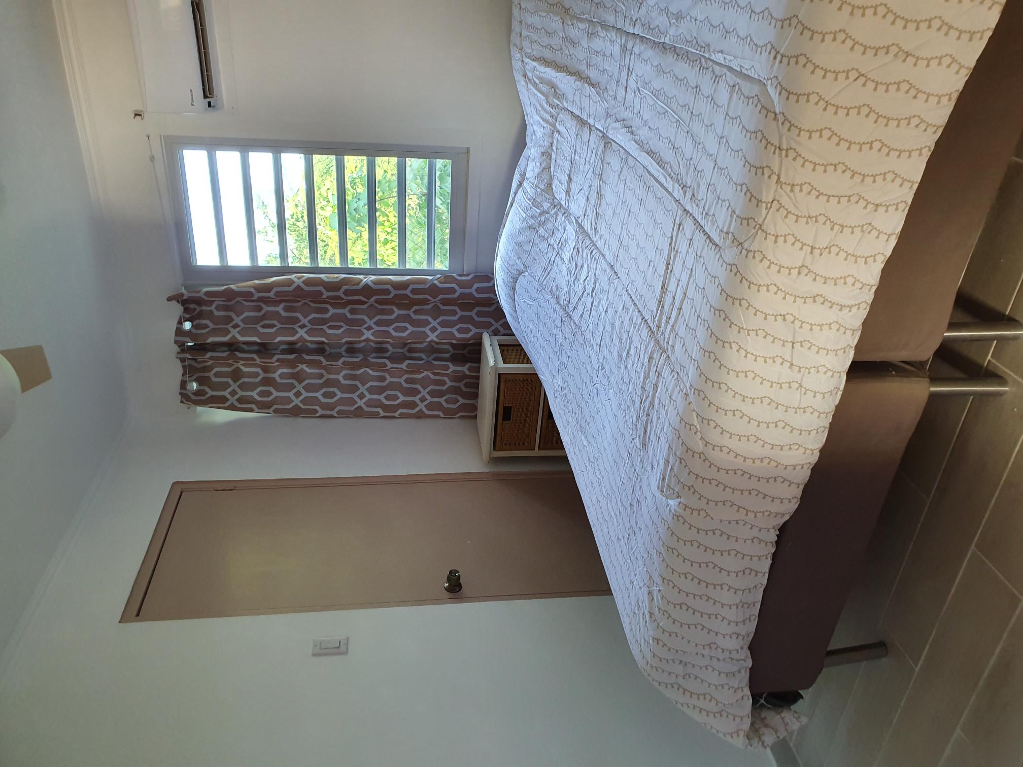 Woonkamer met grote goed geoutilleerde keuken en een slaapkamer, waar alles wat je nodig hebt aanwezig is: